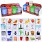 В комплекте: Подставка, Четыре открывающихся маленьких ящика с прорезями, Набор фигурок для сортировки.