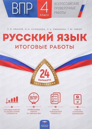 Издания серии "ВПР. Всероссийские проверочные работы" предназначены для организации итоговой проверки уровня освоения обучающимися образовательной программы начального общего образования. В сборник включены 24 варианта итоговых проверочных работ по русскому языку для 4-го класса (12 работ по 2 варианта), построенных по образцу ВПР: - стартовые, - тренировочные, - повышенного уровня сложности. Все работы сопровождают ответы и указания по оцениванию выполнения заданий, представленные в отдельной брошюре, вложенной в сборник. Также в брошюре представлены тексты диктантов. Учителя могут использовать издания серии для организации контроля результатов освоения школьниками образовательных программ начального общего образования.