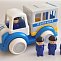С интересной и оригинальной полицейской машинкой малыш не будет скучать. Игрушка довольно легкая, впереди есть отверстие для того, чтобы вдеть туда веревку и катать машинку вслед за собой. Задняя дверца открывается. Массивные колеса автомобиля изготовлены из резины. В игрушке находятся человечки, которых можно вытаскивать через заднюю дверь. Они наверняка привлекут внимание малыша и станут героями его игр.