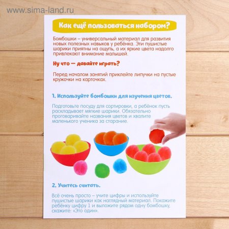 В набор входят 30 бомбошек с липучками и 10 заданий.