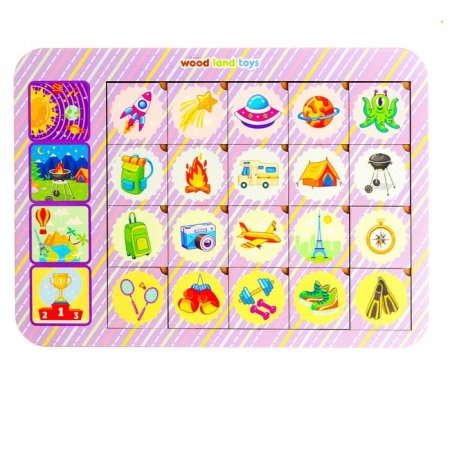 Квадраты в ряд (всего 4 ряда) с признаками этих времен года, таких как: погодные и природные явления, активности, одежда и обувь по сезону, фрукты или овощи по сезону.