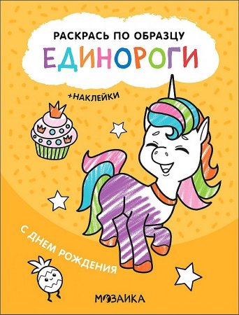 Раскрась по образцу Единороги + наклейки