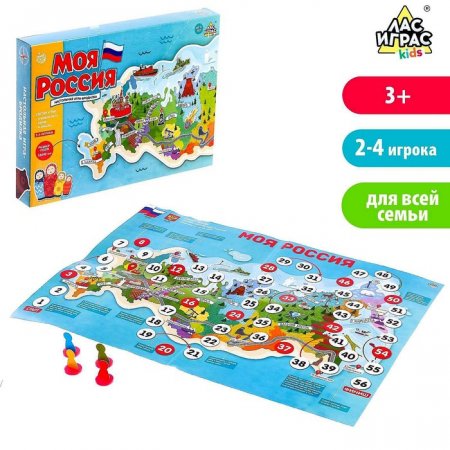Настольная игра «Моя Россия» рекомендована детям старше 3 лет и рассчитана на весёлую компанию до 4 участников. Она развивает память, моторику, внимание и даёт полезные знания!