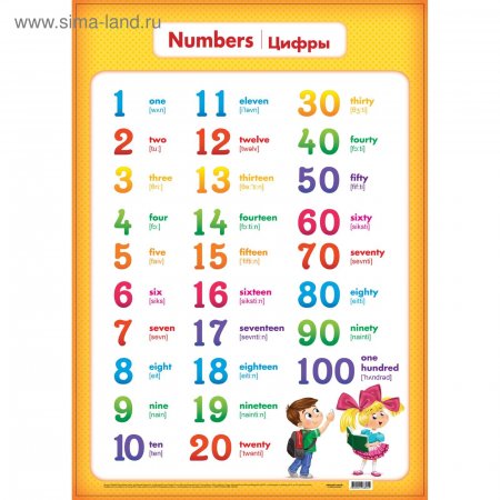 Плакат обучающий "Английские цифры" А2 ( Сима-Ленд)
