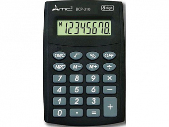 Калькулятор карманный BCP-310 MC2 8-разрядный в корпусе черного цвета. Калькулятор производит арифметические и процентные расчеты, вычисляет квадратный корень, снабжен функцией памяти и кнопкой очистки введенных данных.
