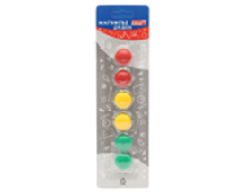 Диаметр магнитов составляет 20 мм. 6 штук в комплекте. Надежно удерживаются на любой железной или стальной поверхности. Магниты отличаются повышенной удерживающей магнитной силой. Магниты круглой формы выполнены из пластика цветов ассорти.