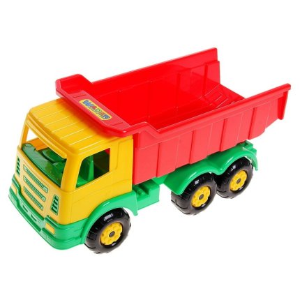 Самосвал — самая популярная игрушка среди мальчиков. Конструкция игрушки выполнена из высококачественного прочного пластика, а также лишена острых углов. Она оснащена вместительным откидным кузовом, в который можно засыпать песок или камушки.