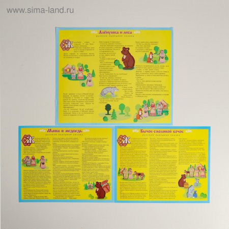 С данным набором дети смогут разыграть сценарии трех разных сказок ("Смоляной бычок", "Аленушка и Лиса" и "Маша и Медведь") или придумать свою собственную историю с участием всех персонажей.