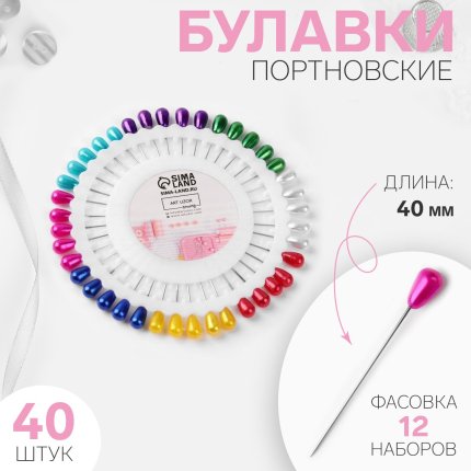 Булавки для закалывания «Капля», d = 8,5 см, 40 игл, 40 мм, цвет МИКС