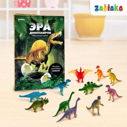 Обучающий набор «Эра динозавров» разработан для детей от 3 лет. Он познакомит малыша с вымершими животными и интересными фактами о них. Маленькие фигурки динозавров превратят процесс обучения в увлекательную игру. Разыграйте весёлые сценки, обязательно используя имена динозавров для лучшего закрепления пройденного материала.