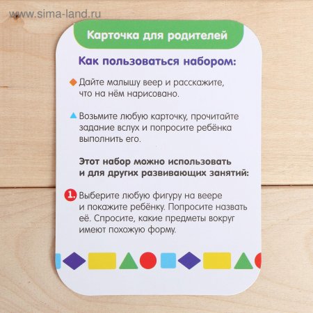 Выберите любую фигуру на веере и попросите кроху назвать её. Какие ещё предметы в окружающем мире похожи на неё?