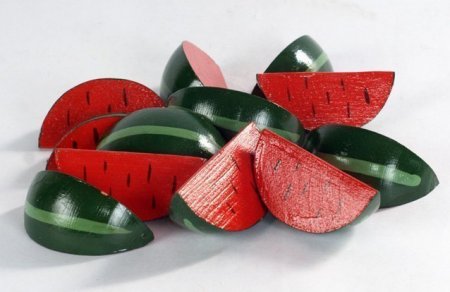 В состав набора входят 12 одинаковых арбузных долек, выполненных из дерева. Такой набор очень удобно использовать для занятий математикой с маленькими детьми. Ведь куда интереснее считать красочные арбузные дольки, чем простые счетные палочки. В процессе занятий можно выучить с ребенком счет, объяснить понятия больше-меньше-равно, научиться складывать и вычитать. Дольки можно складывать в большие кусочки, познакомив ребенка с понятиями часть-целое. Размер 1 дольки: 6х2,5 см Число долек в наборе: 12 шт Материал: дерево Упаковка: прозрачный пакет и картонным клапаном Вес: 90 гр.
