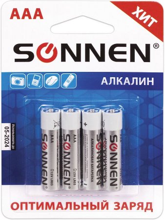 Алкалиновые батарейки SONNEN популярного типоразмера АAA идеально подходят для приборов со средним и высоким потреблением энергии. Рекомендуется использовать в фотоаппаратах, mp3-плеерах, компьютерных мышах и пультах ДУ.
