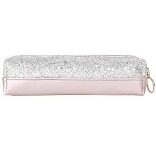 Пенал-косметичка кожзам.серый узкий блестящ.