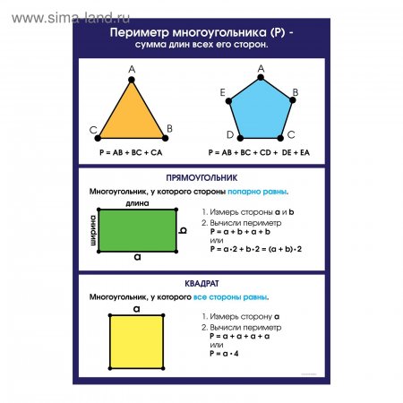 Плакат Периметр многоугольника, А2 Сима-ленд