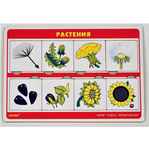 Игры серии «Чудеса преображения» помогут ребенку в форме непринужденной игры познакомиться со стадиями, которые проходят в своем развитии самые разные живые существа и растения. В планшете «Растения» представлены стадии развития одуванчика и подсолнуха. Планшет содержит 8 вкладышей с изображениями и методические рекомендации по использованию игрового материала. Игра позволяет познакомиться ребенку с окружающим миром, понять «откуда» появляются различные существа и растения, знакомит с различными стадиями развития, расширяет кругозор малыша.